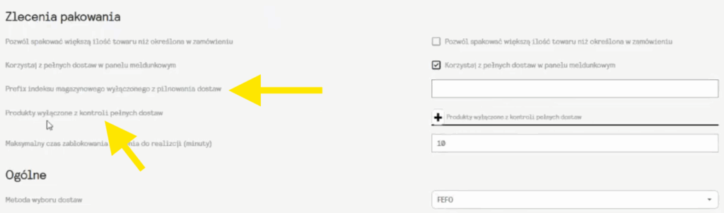 Możesz wyłączyć dowolny indeks magazynowy (bądź cały prefix) z kontroli pełnych dostaw w zleceniach pakowania. Zmiana dostępna w ustawieniach magazynu – widoczna przy wyborze opcji kontroli i konfiguracji indeksów.