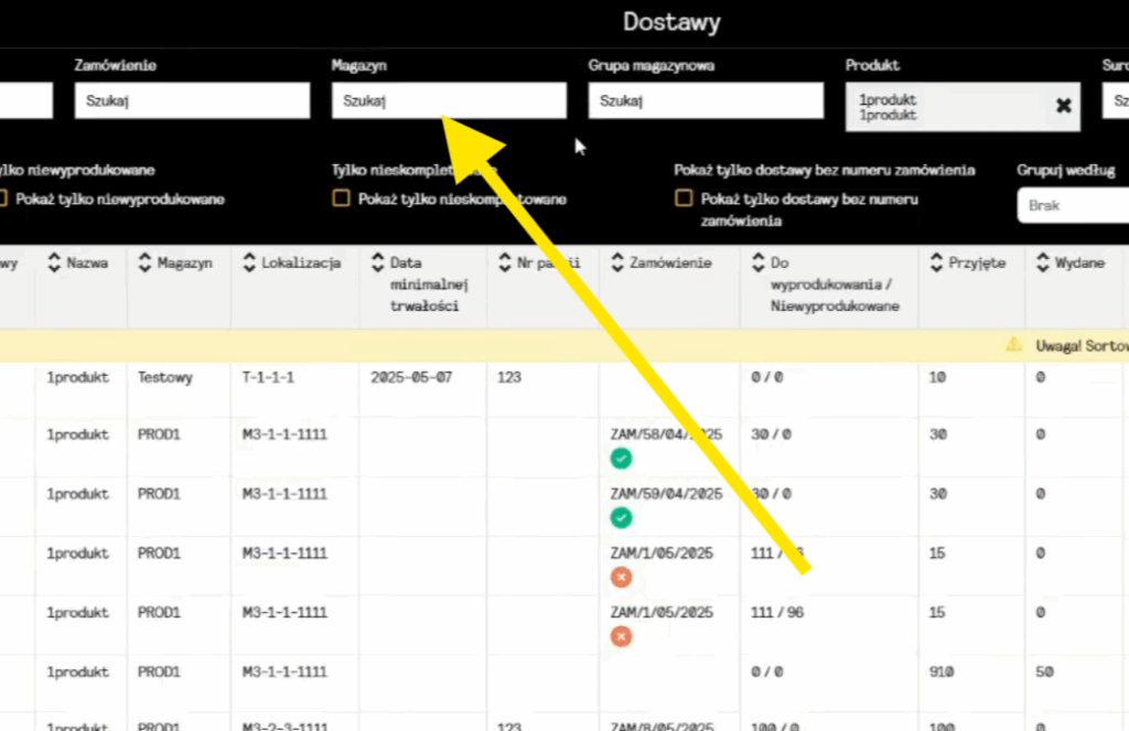 - Wyłączenie indeksu magazynowego z pilnowania dostaw.