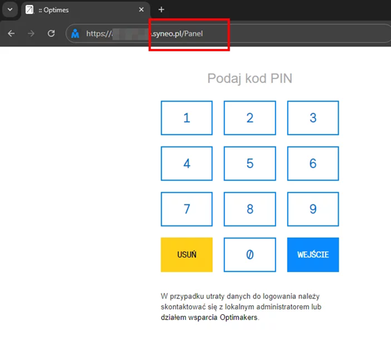 Do logowania do panelu OptiMES możesz wykorzystać numer PIN. Do adresu logowania do konta Optimes dodaj /panel