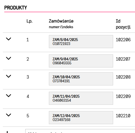 Jak możemy zauważyć, zlecenia te możemy śledzić po przedstawionych przez system ID.