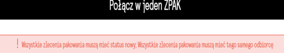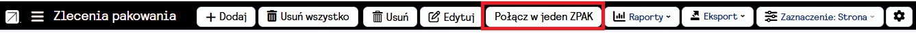 Po oznaczeniu zleceń, na pasku na górze ekranu, pojawi się nowy przycisk “Połącz w jeden ZPAK”