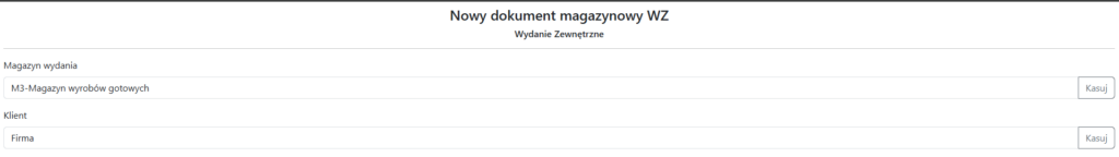 W tym miejscu musimy wskazać magazyn, z którego wydajemy towar: