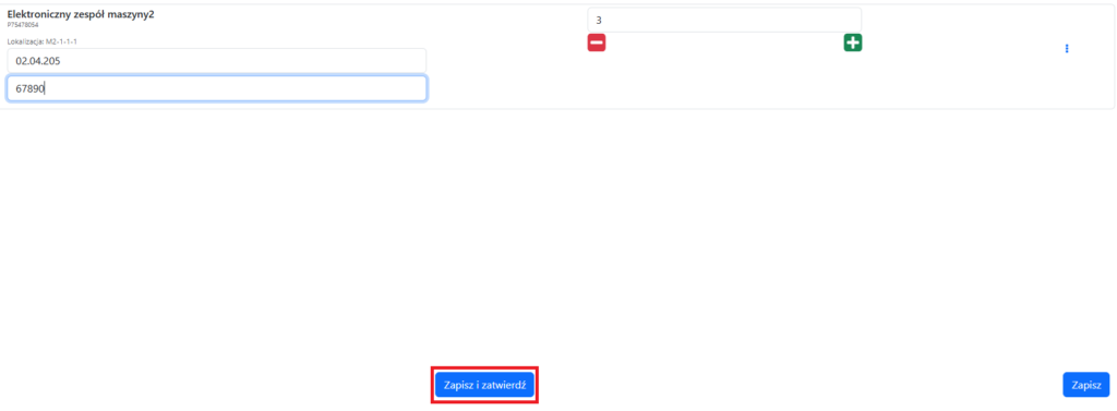 Ostatnim krokiem będzie uzupełnienie dodatkowych danych, takich jak data trwałości oraz numer partii, tak wypełniony dokument, jest gotowy do zapisania oraz zatwierdzenia: