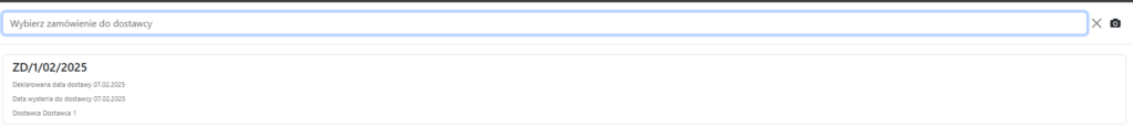 • skan indeksu towaru lub nazwy towaru (jeśli będzie dokładnie 1 dostawa o tym indeksie lub nazwie to ją wybierze do dokumentu, ale jeśli będzie więcej niż 1 to odfiltruje i pokaże wyniki na ekranie)