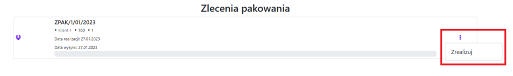 Z tego poziomu jesteśmy w stanie zrealizować zlecenia pakowania, które zostały dodane z poziomu głównej aplikacji.