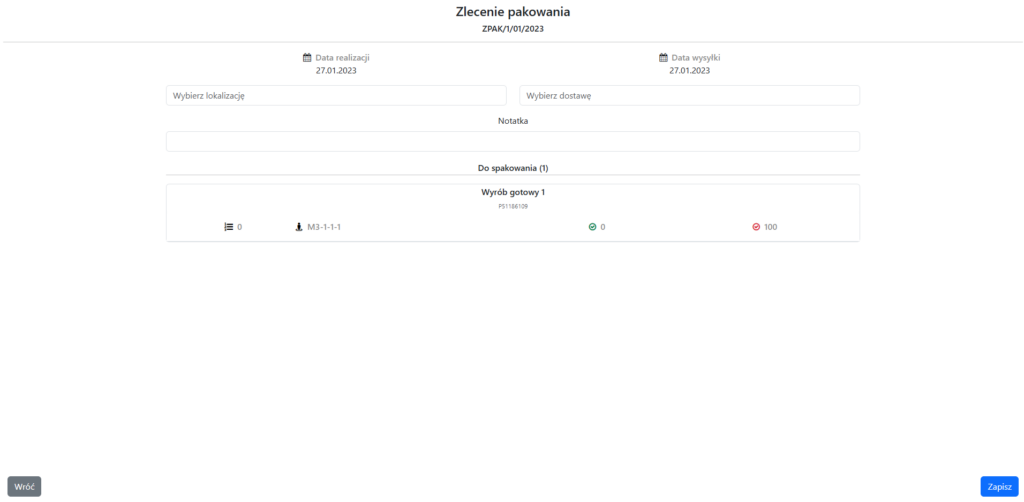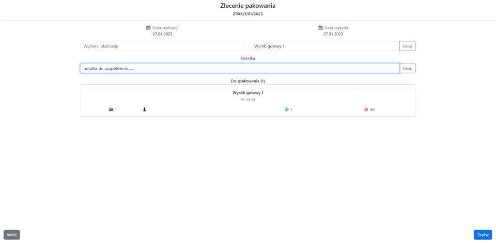 System informuje nas, w sekcji „do spakowania” gdzie znajdują się pożądane przez nas wyroby