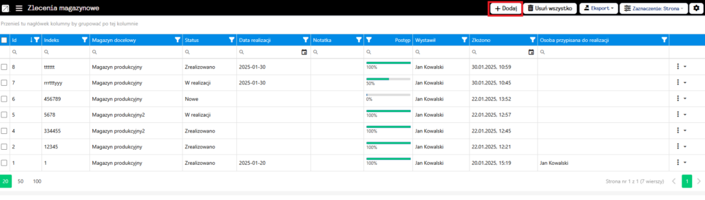 Menu – Magazyn – Zlecenia magazynowe – Dodaj
