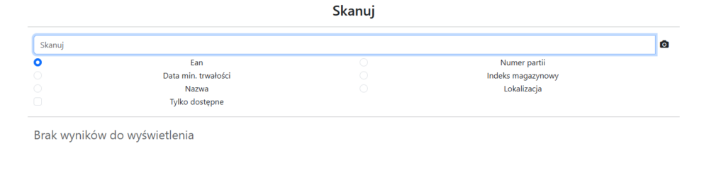 Do pola wyszukiwania w module mobilnego magazyniera dodano ikonę aparatu z prawej strony. Skanowanie jest dostępne w następujących miejscach: