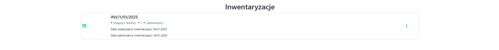 7. Inwentaryzacja  – Funkcja pozwalająca sprawdzić kiedy miały miejsce inwentaryzacje, oraz dokonać takowej.