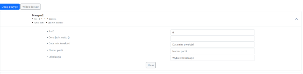 Dodatkowe dane takie jak lokalizacja może uzupełnić osoba podejmująca dostawę, lub jedynie zapisać dokument, aby osoba mająca informacje szczegółowe mogła to zrobić później i dopiero wtedy zatwierdzić dokument.