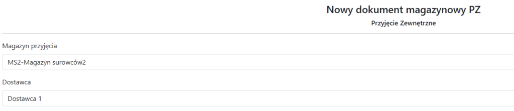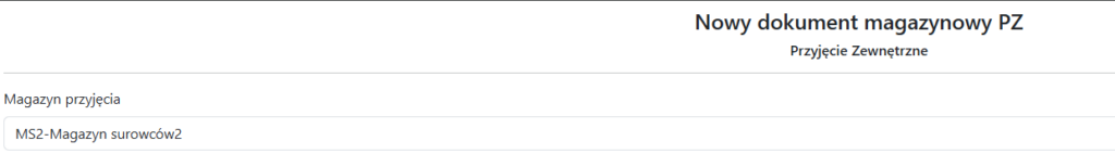 Wskazujemy magazyn, na który chcemy przyjąć dany surowiec/towar.