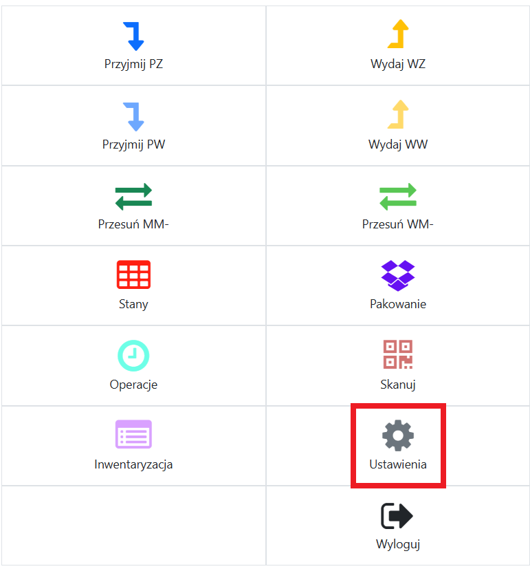 Gdy otworzymy Mobilny Magazyn, znajdziemy kafelek “Ustawienia”