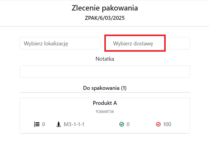 Po wybraniu Zlecenia Pakowania standardowo wybieramy “Wybierz Dostawę”
