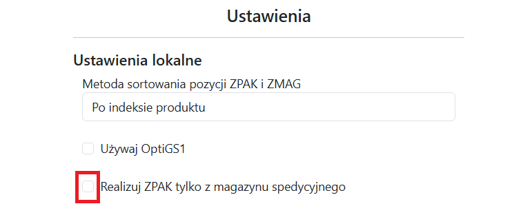 W ustawieniach znajdziemy checkbox “Realizuj ZPAK tylko z magazynu spedycyjnego” – ta opcja musi zostać odznaczona.