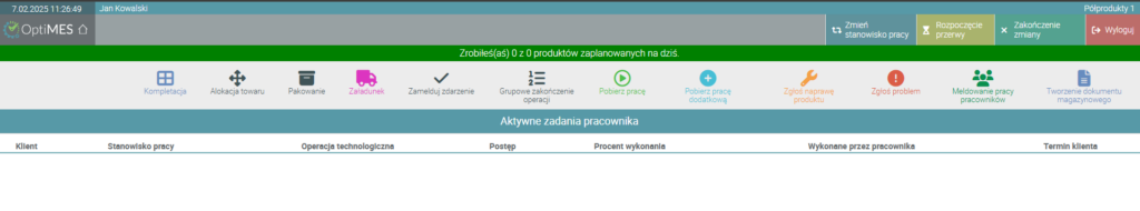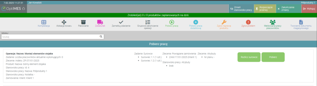 Po wyborze przycisku “Zrobione” automatycznie zamykane jest aktywne zadanie pracownika i pojawia się możliwość pobrania kolejnej pracy.