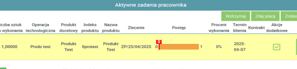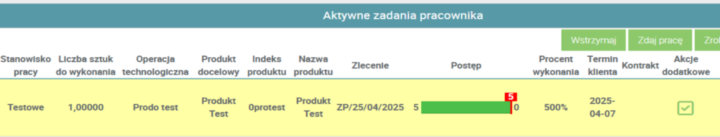 Pracownik, który ma nadane te uprawnienia, podczas Meldowania postępu swoich prac, będzie w stanie wpisać większe liczby, niż przewiduje zamówienie.