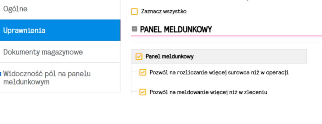 !UWAGA! – powyższe ustawienia działają w tandemie, ale są od siebie niezależne. Jeśli pracownik będzie w stanie meldować większą ilość wyprodukowanych wyrobów, ale nie rozliczać surowców, system nadal nie pozwoli rozliczyć surowców w większej ilości, niż wynika to z szablonów technologii.