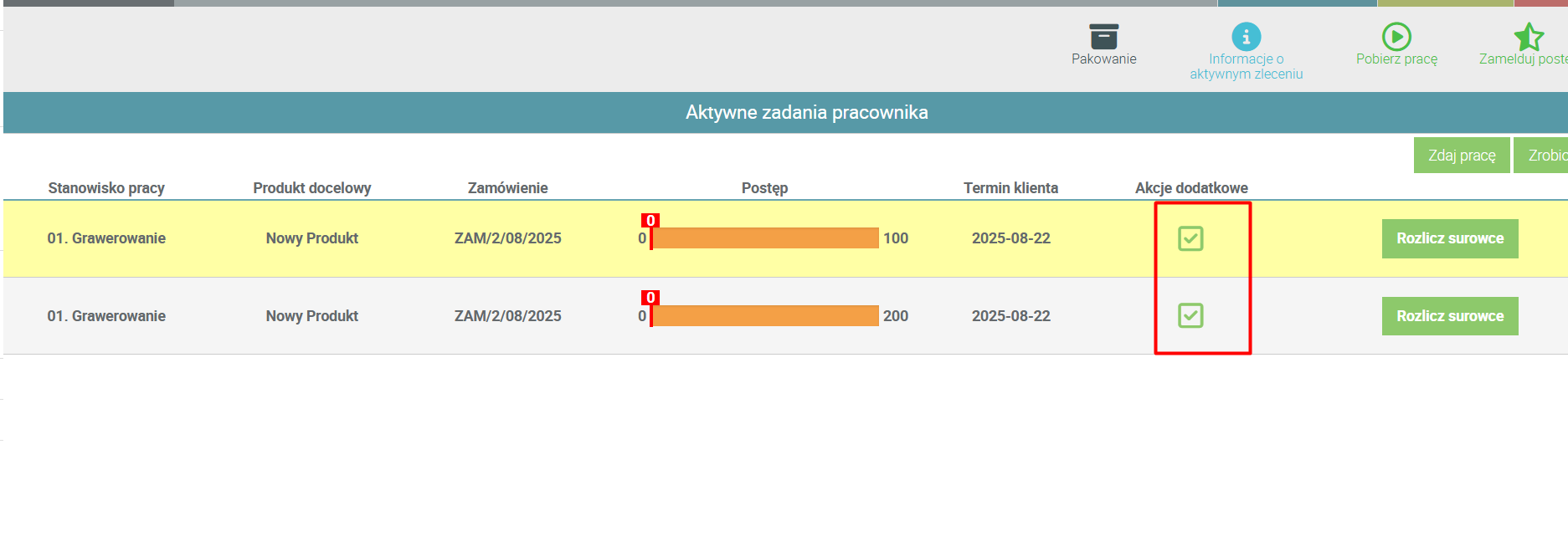 Aby skorzystać z tej funkcjonalności pracownik musi mieć przypisane uprawnienie Możliwość pobrania wielu prac przez jednego pracownika na jednym stanowisku pracy.