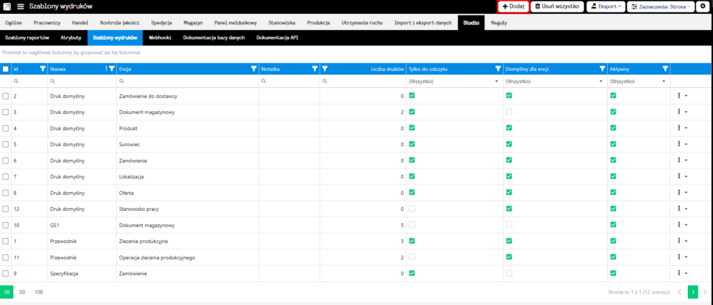 Zdefiniuj 3 szablony wydruków: