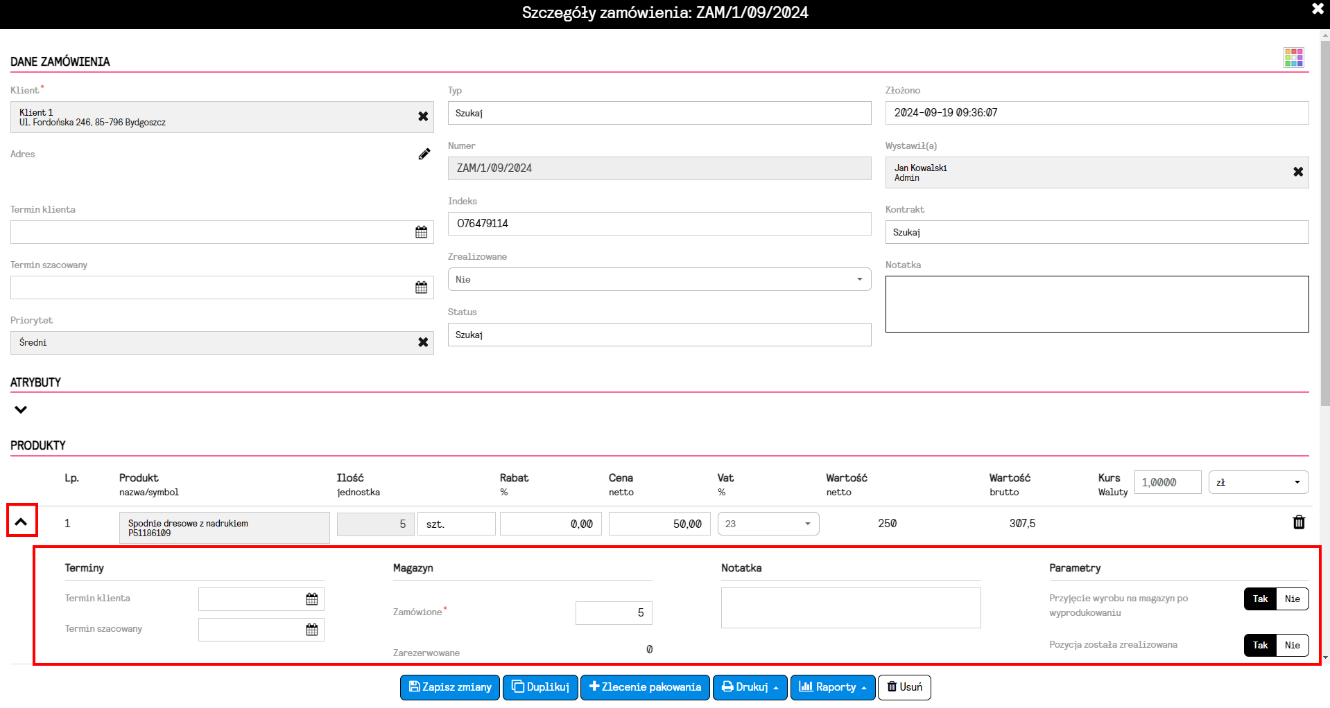 Szczegóły pozycji zamówień pozwalają nam odczytać lub ustawić dodatkowe informacje: