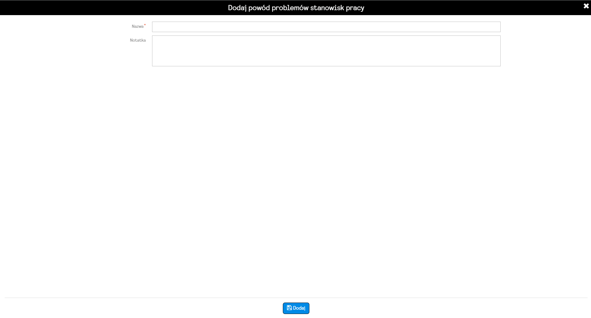 Aby dodać nowy problem stanowiska pracy, należy kliknąć DODAJ.