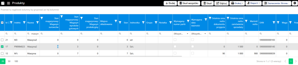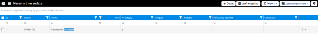 W pierwszej kolejności musimy zdefiniować nasze maszyny i narzędzia, jako produkty. Pozwoli to na ewidencjonowanie ich.