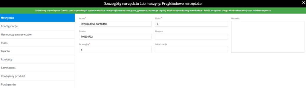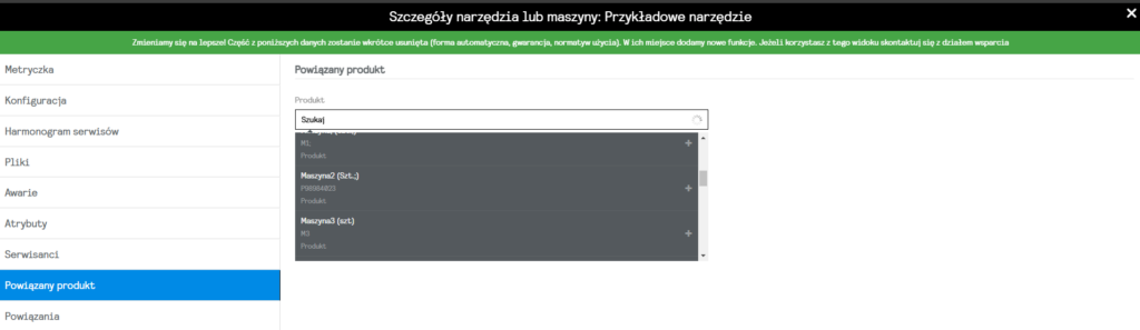 Kolejną funkcjonalnością, która jest efektem prac naszego zespołu nad rozwojem modułu utrzymania ruchu, jest powiązanie produktów z narzędziami oraz maszynami.